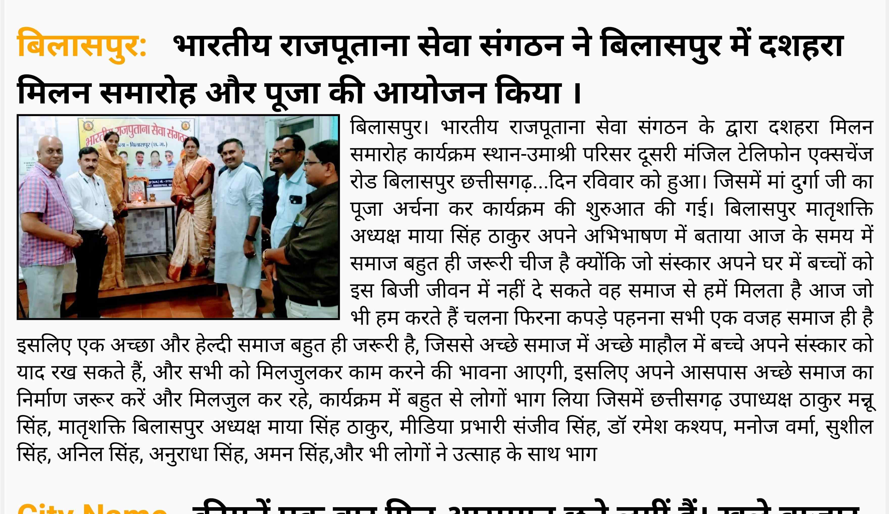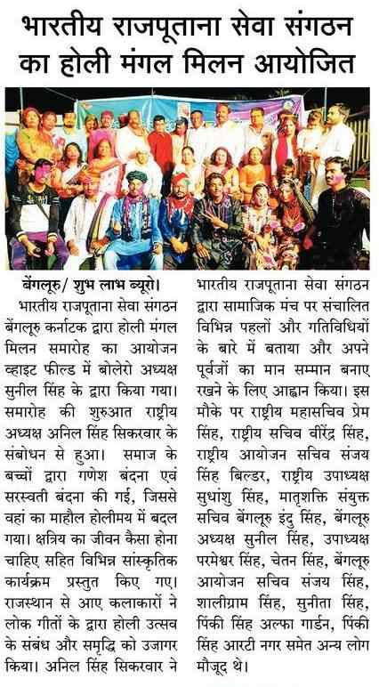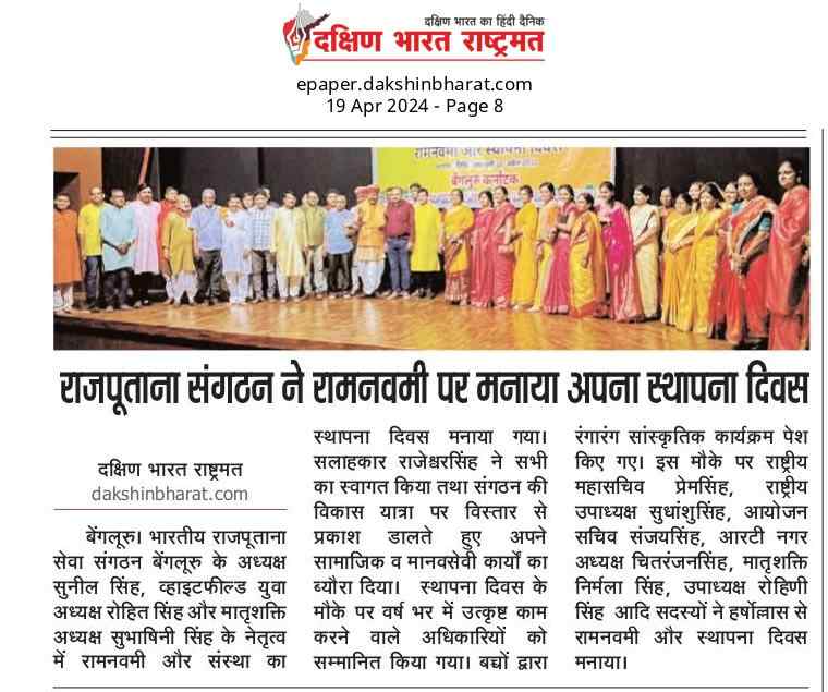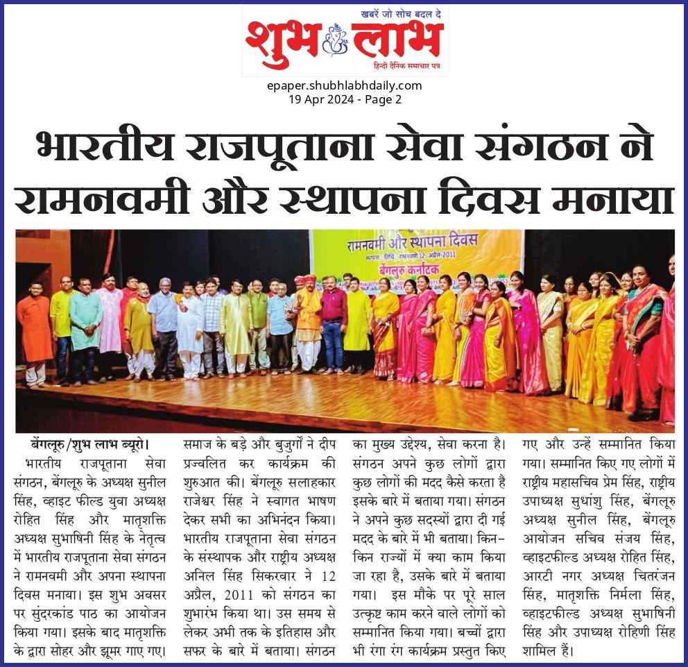 भारतीय राजपूताना सेवा संगठन स्थापना :- दिन मंगलवार तिथि :-रामनवमी 12- अप्रैल-2011